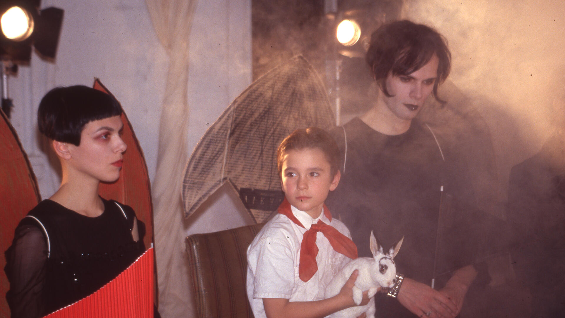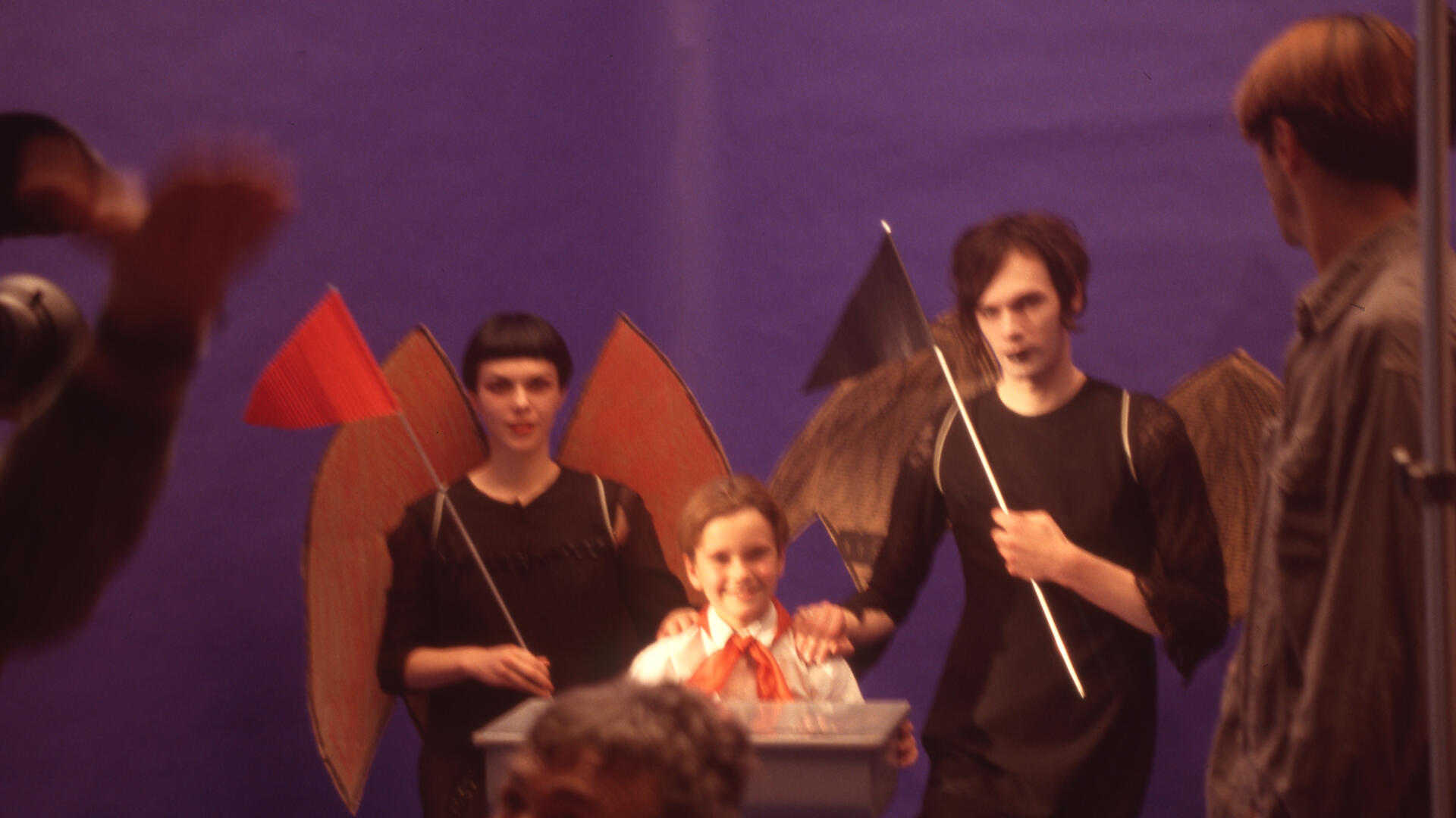 The family meal of a communist boy surrounded by black angels evolves into an attack against racism and ethnic conflicts. A collage of controversial writings bombards the screen—poetry by Louise Bak, prose by Living Theatre and Malcom X, and reports on Kosovo war crimes—in a closed production of a fin-de-siècle rondo, triumphantly negating all propaganda.