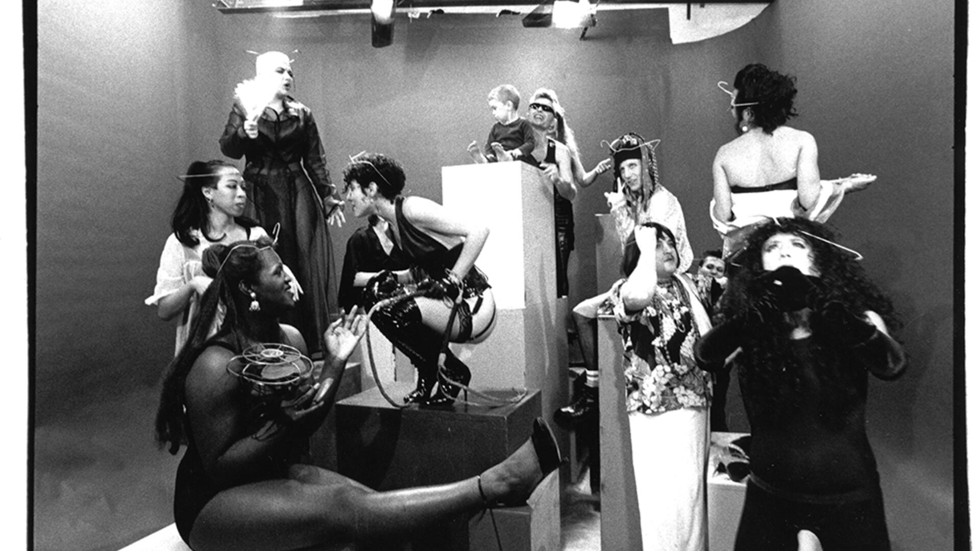 The goddess Diva Mutant floats between earth and sky, refusing to be limited and affirming her sovereign autonomy. She summons the gods, a group of liberated eccentrics, to a party where each demonstrates his libertarianism. Through his feminine alter ego, Kantor expresses a fiercely individualist weltanschauung in constant struggle with authority.