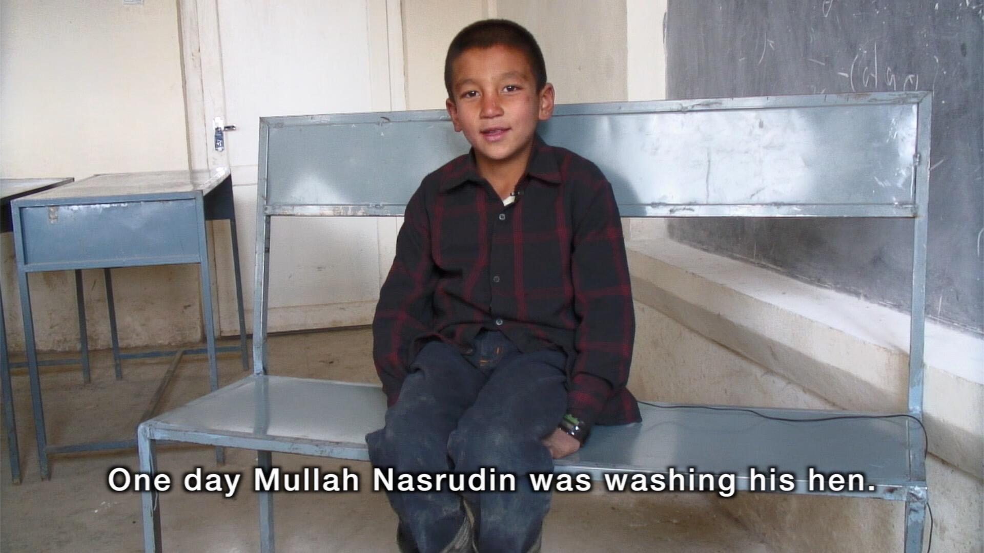 After my first year of art school in San Francisco in 1978, I quit, and headed to the Banff School of Fine Arts to do a year-long residency program. The instructor Hu Hohn got me hooked on Sufi stories such as, The Exploits and Subtleties of the Incomparable Mulla Nasrudin. Mulla Nasrudin is a Sufi wise-fool, trickster-like figure. These books were chock full of funny little contemplative mediation stories. I would read these riding the bus at night and such, to get me through trying days. Later in 2008, I'm in the central highlands of Afghanistan, in Bamiyan, where the colossal Buddha statutes were destroyed by the Taliban. A stark, arid, severe, beautiful landscape, people scrapping by, subsistence farming, much like my grandparents did in Syria. I'm filming scruffy little country boys in a new school built by Western troops. The boys are speaking Hazaragi (a Farsi dialect), via my translator but never having the time to translate responses. At the end of each session, we ask them to tell a joke or a song, something other than the conversation we’ve tried to record. Six months later when I’m back home and the rough transcript translations have been sent to me from Quetta, I discover, lo and behold, then and there, were the very same Sufi stories – thirty years later – being told by these scruffy little country boys at Laisa-e-Aali Zukoor boys school, Bamiyan, Hazarajat, Afghanistan.