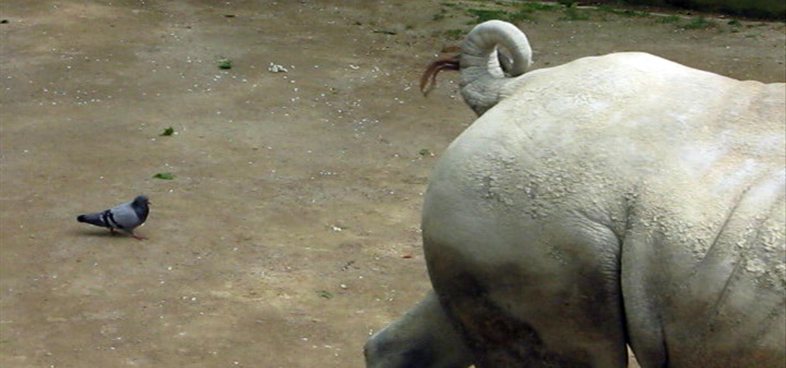 Un rhinocéros et deux pigeons entrent dans un zoo et... voyez par vous-même.